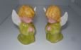 Smaller salt & pepper shakers, Boy & Girl Angels Praying.7.5cm H x 4cm wide from wing to wing. Chartreusse colour.