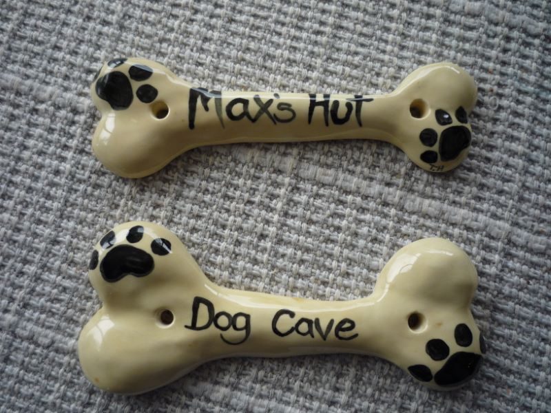 My Dog Bones, can be used for a kennel sign, or anywhere you would like. These are a sample of what I can do. They can be any size, made to order, these are approx. 16cmx7cm. You can have your own words, and colours. They are Handmade and Handpainted.Please allow 2-3weeks for delivery.