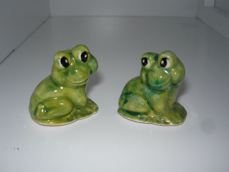 These small frog salt & pepper shakers are quite cute as well. Hand Painted. They measure 4.5cm x 4cm wide.