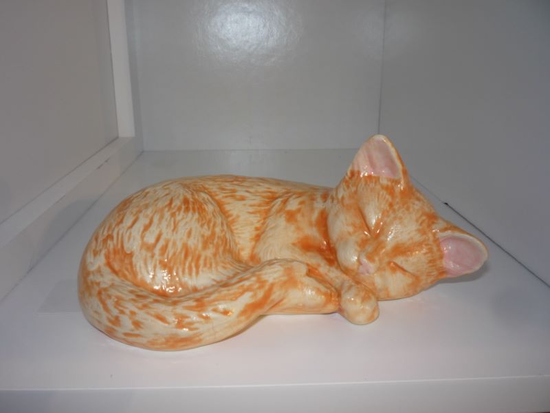 Small very cute Sleeping Cat, this one is Ginger in colour, but I can do them any colour you would like.Approx 16cm long x 7cm high up to the ear.